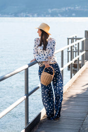 Camicia in pura seta stampata, maniche lunghe dalla linea morbida con collo all'italiana, doppi bottoni sui polsini e abbottonatura all’inglese.