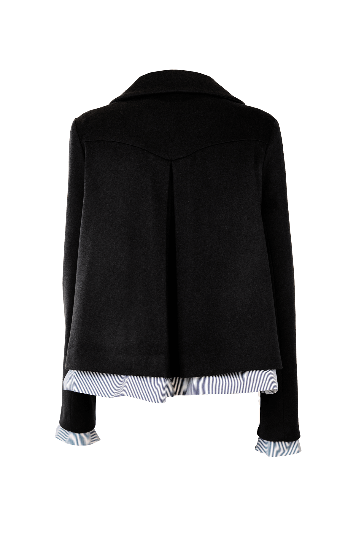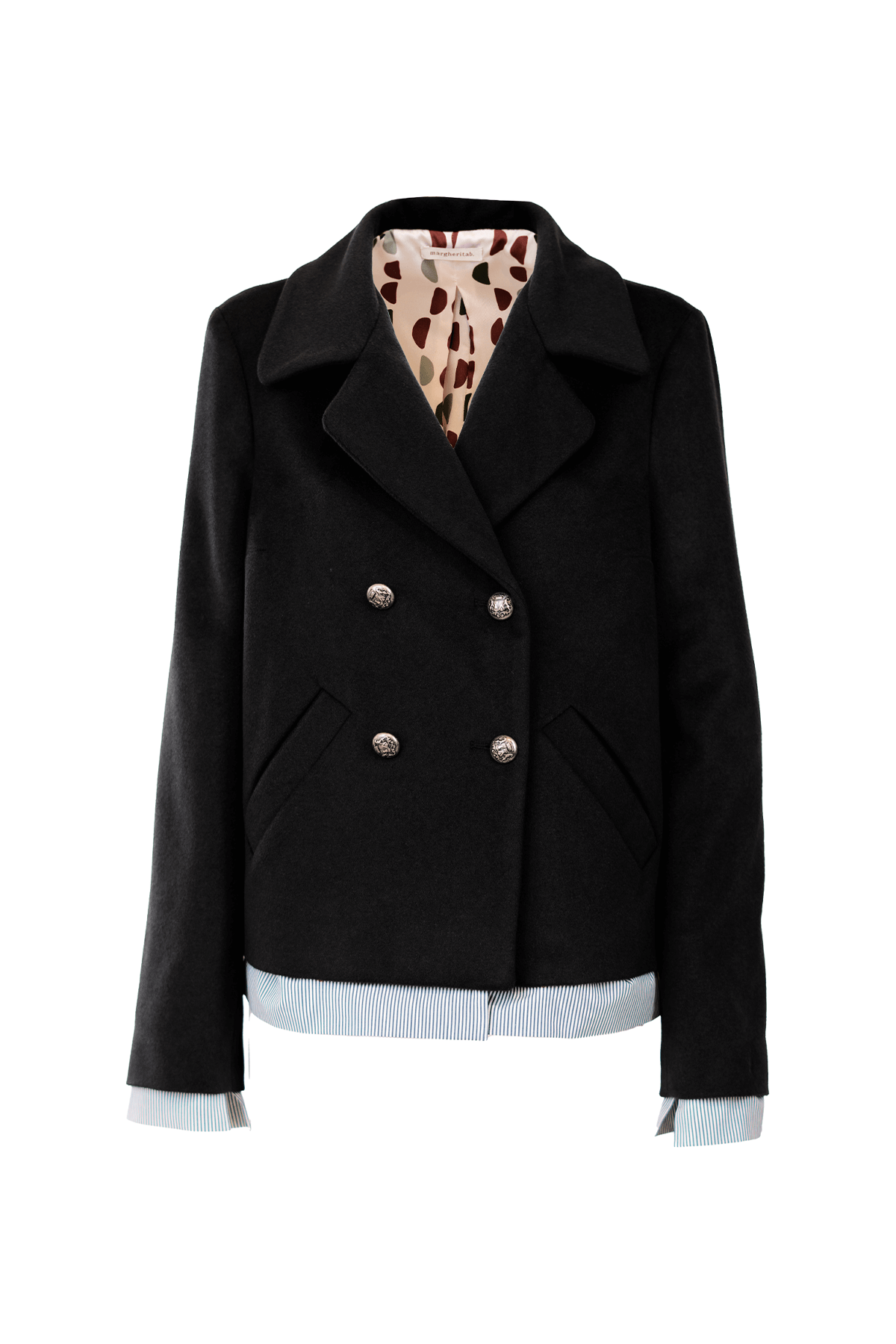 Realizzato in 100% cashmere, questo cappotto a trapezio unisce leggerezza e calore in un equilibrio perfetto. L’abbottonatura doppiopetto dona carattere, mentre le tasche in sbieco aggiungono un tocco sartoriale ricercato.