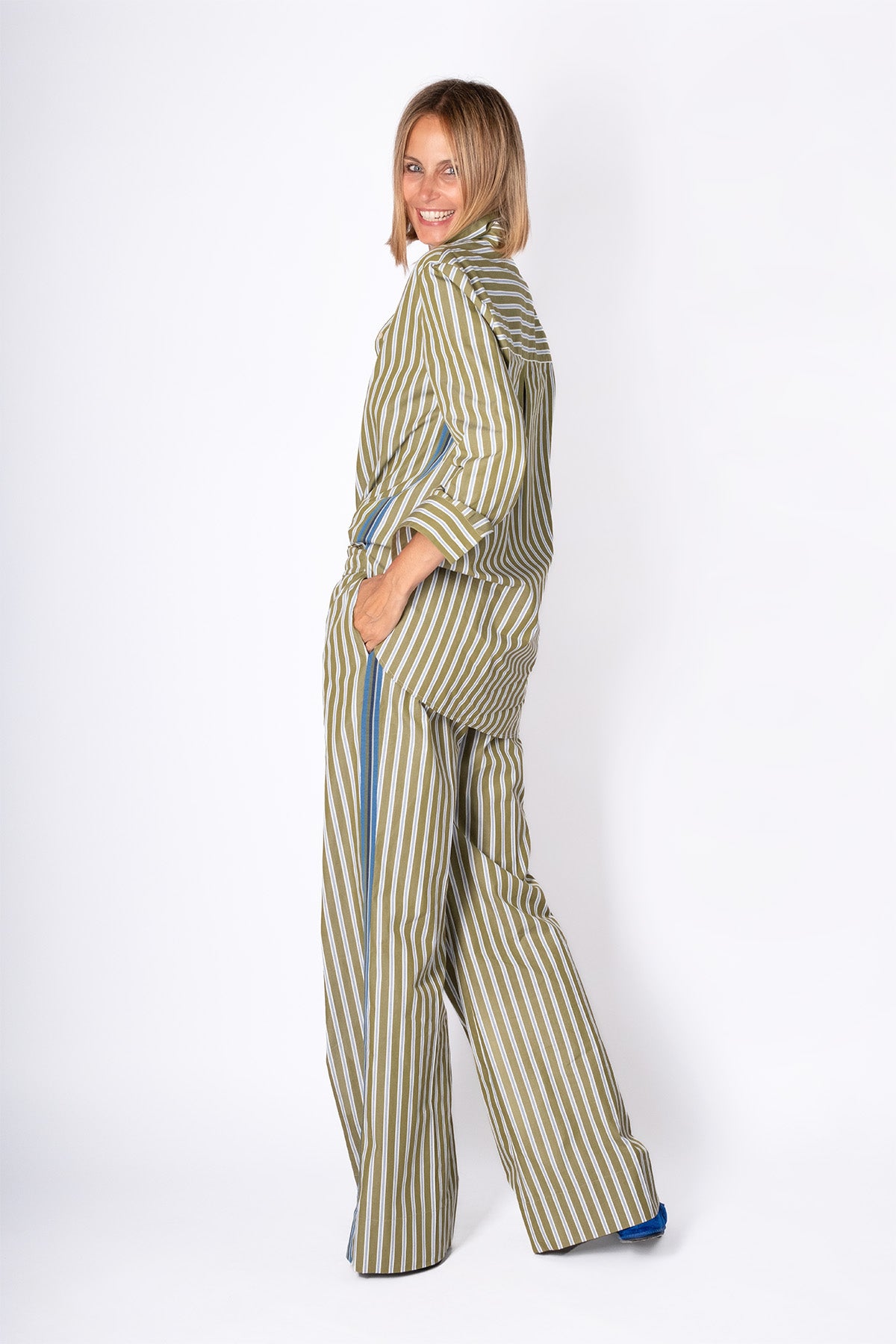 CAMICIA OVER RIGATA VERDE